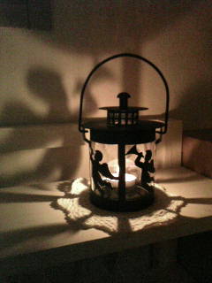 中にアロマキャンドルを灯し